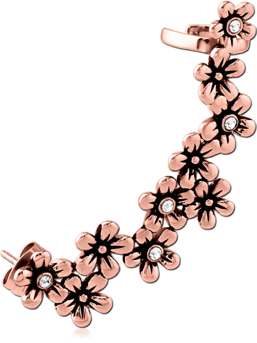 ROSE GOLD PVD COATED SURGICAL STEEL GRADE 316L JEWELED EAR CUFF - FLOWERS