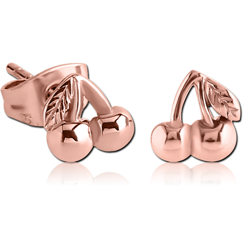 ROSE GOLD PVD COATED SURGICAL STEEL GRADE 316L EAR STUDS PAIR - CHERRY