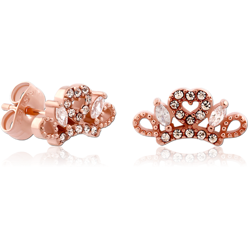 ROSE GOLD PVD COATED SURGICAL STEEL GRADE 316L JEWELED EAR STUDS PAIR