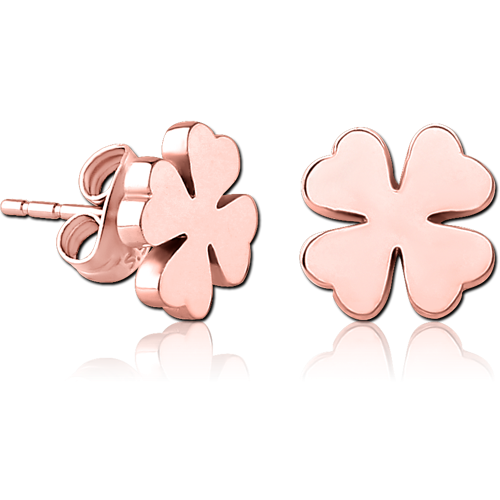 ROSE GOLD PVD COATED SURGICAL STEEL GRADE 316L EAR STUDS - SHAMROCK