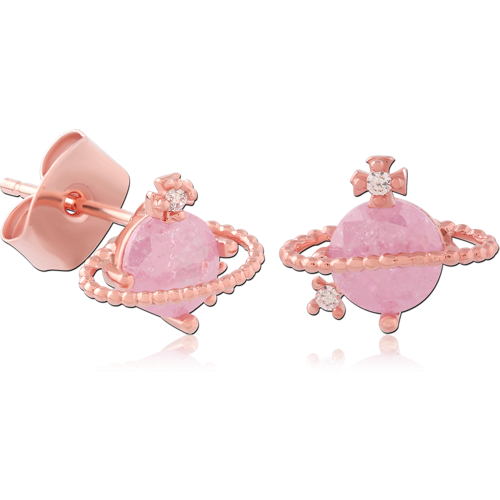 STERLING 925 SILVER ROSE GOLD PLATED JEWELED EAR STUDS PAIR