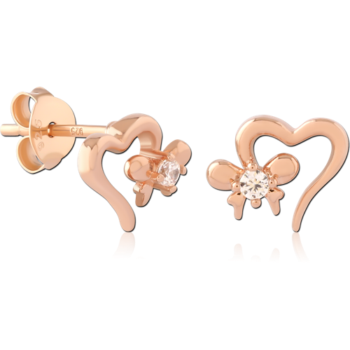 STERLING 925 SILVER ROSE GOLD PLATED JEWELED EAR STUDS PAIR SPECIAL NEW DESIGN