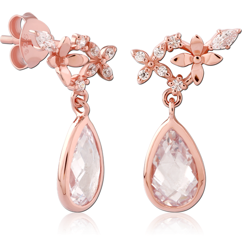 STERLING 925 SILVER ROSE GOLD PVD COATED JEWELED EAR STUDS PAIR