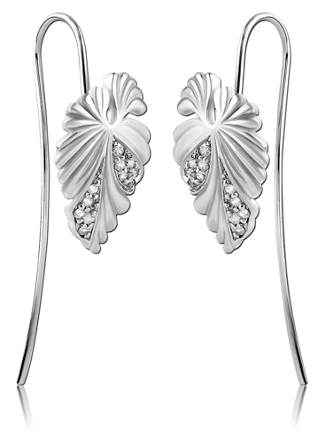 RHODIUM PLATED STERLING 925 SILVER JEWELED EARRINGS PAIR - LEAF