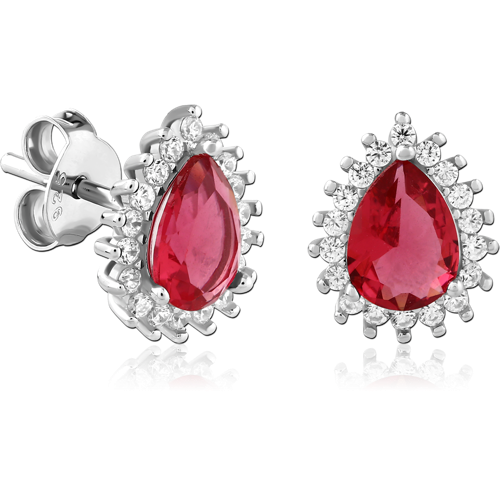 STERLING SILVER 925 RHODIUM COATED JEWELED EAR STUDS PAIR SPECIAL NEW DESIGN