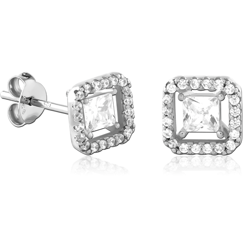 STERLING 925 SILVER RHODIUM PLATED JEWELED EAR STUDS PAIR SPECIAL NEW DESIGN