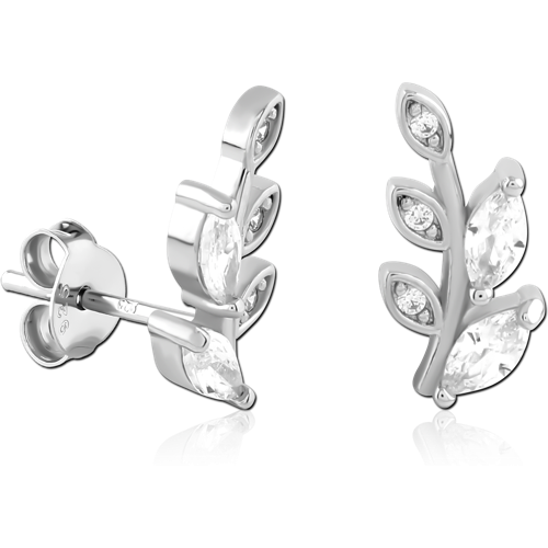 STERLING SILVER 925 RHODIUM COATED JEWELED EAR STUDS PAIR SPECIAL NEW DESIGN