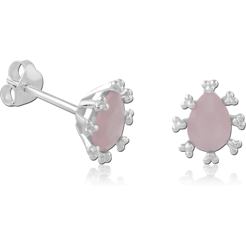 STERLING SILVER 925 RHODIUM COATED JEWELED EAR STUDS PAIR SPECIAL NEW DESIGN