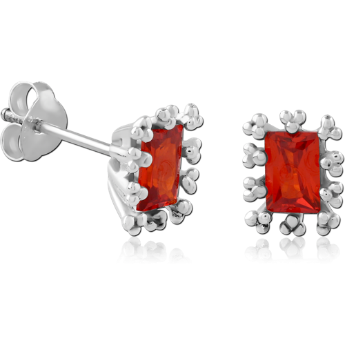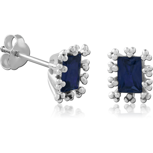 STERLING SILVER 925 RHODIUM COATED JEWELED EAR STUDS PAIR SPECIAL NEW DESIGN