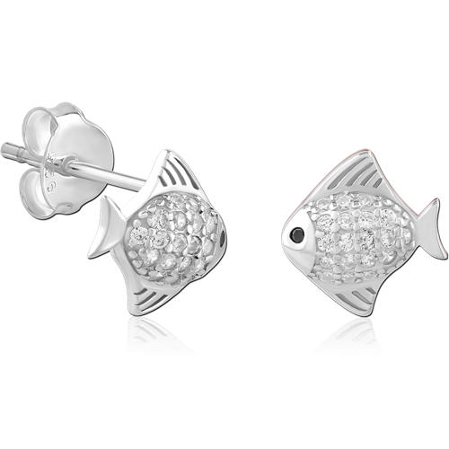STERLING SILVER 925 RHODIUM COATED JEWELED EAR STUDS PAIR SPECIAL NEW DESIGN