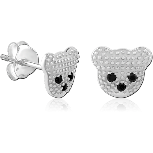 STERLING SILVER 925 RHODIUM COATED JEWELED EAR STUDS PAIR SPECIAL NEW DESIGN