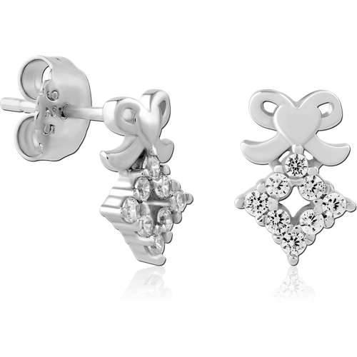 STERLING SILVER 925 RHODIUM COATED JEWELED EAR STUDS PAIR SPECIAL NEW DESIGN