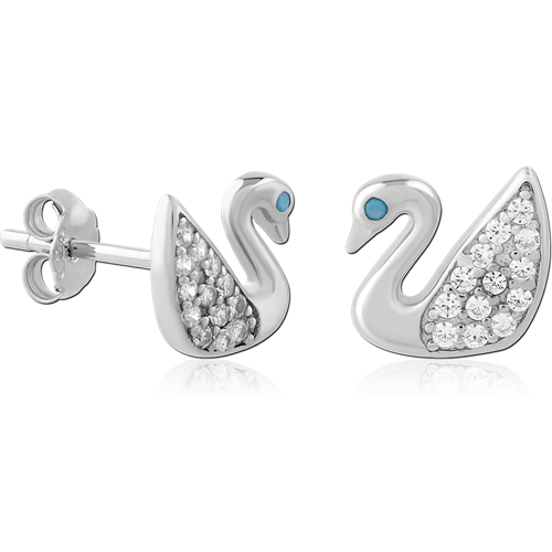 STERLING SILVER 925 RHODIUM COATED JEWELED EAR STUDS PAIR SPECIAL NEW DESIGN