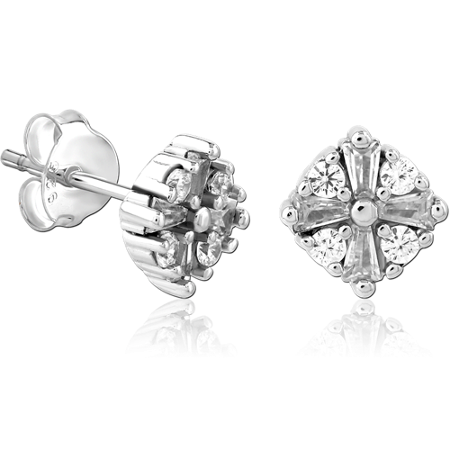 STERLING SILVER 925 RHODIUM COATED JEWELED EAR STUDS PAIR SPECIAL NEW DESIGN