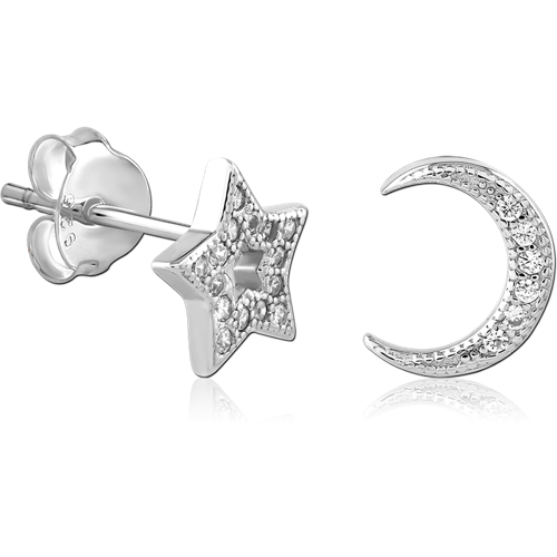 STERLING SILVER 925 RHODIUM COATED JEWELED EAR STUDS PAIR SPECIAL NEW DESIGN