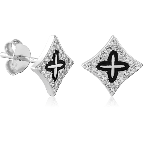 STERLING SILVER 925 RHODIUM COATED JEWELED EAR STUDS PAIR SPECIAL NEW DESIGN