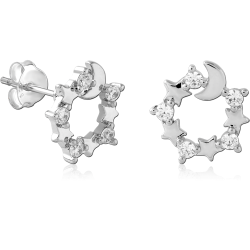 STERLING 925 SILVER RHODIUM PLATED JEWELED EAR STUDS PAIR