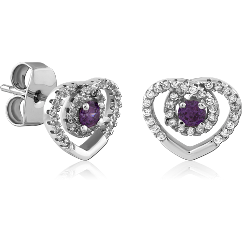 STERLING SILVER 925 RHODIUM COATED JEWELED EAR STUDS PAIR SPECIAL NEW DESIGN