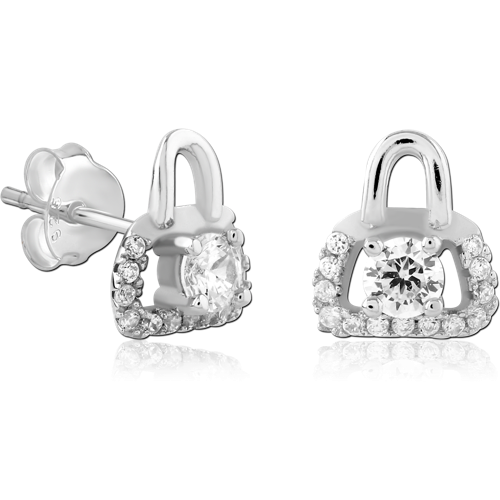 STERLING SILVER 925 RHODIUM COATED JEWELED EAR STUDS PAIR SPECIAL NEW DESIGN