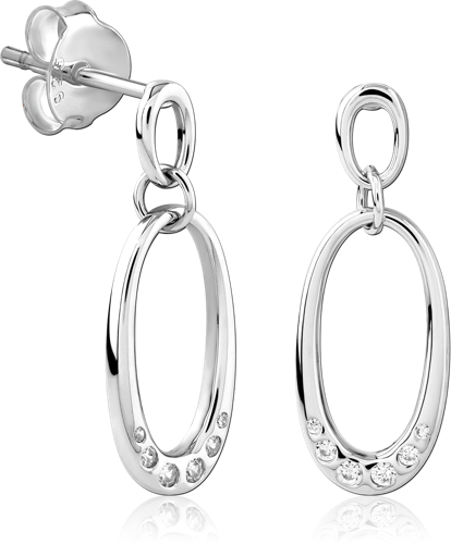 STERLING 925 SILVER RHODIUM PLATED JEWELED EAR STUDS PAIR