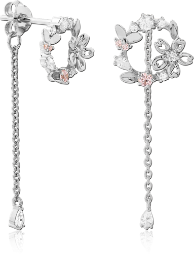 STERLING SILVER 925 RHODIUM COATED JEWELED EAR STUDS PAIR
