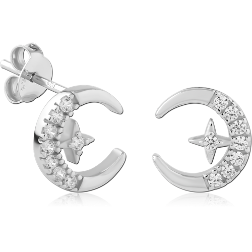 STERLING SILVER 925 RHODIUM COATED JEWELED EAR STUDS PAIR SPECIAL NEW DESIGN