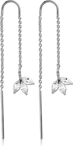 SURGICAL STEEL GRADE 316L CHAIN JEWELED EARRINGS PAIR - LEAF