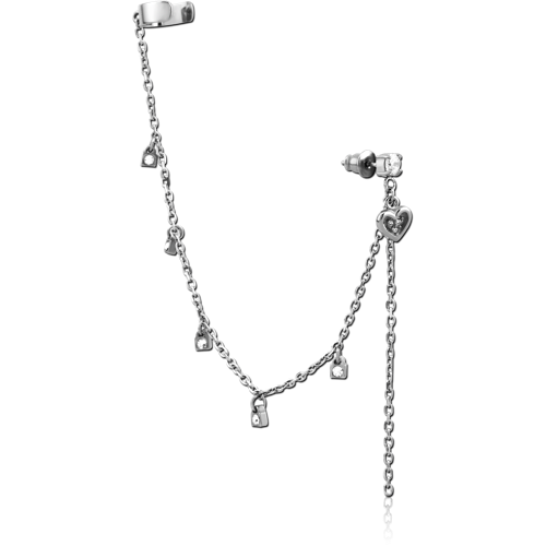 SURGICAL STEEL GRADE 316L JEWELED EAR CUFF - HEART AND LOCK