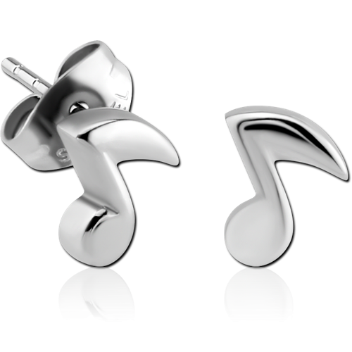 SURGICAL STEEL GRADE 316L EAR STUDS PAIR - MUSIC NOTE