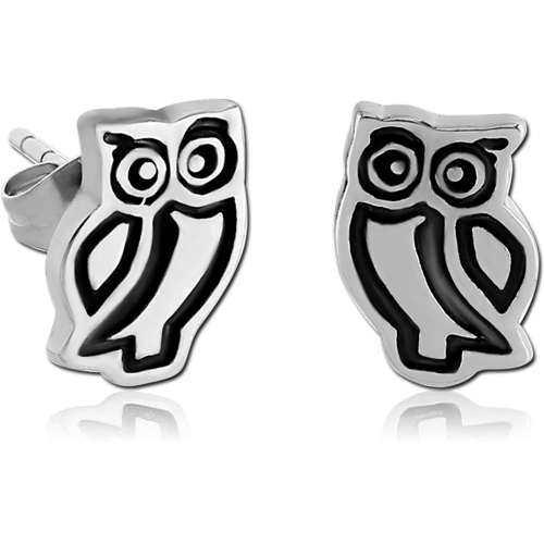 SURGICAL STEEL GRADE 316L EAR STUDS PAIR - OWL