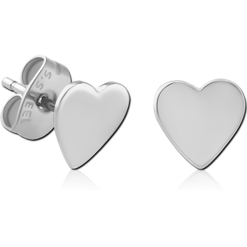 SURGICAL STEEL GRADE 316L EAR STUDS PAIR - HEART FLAT