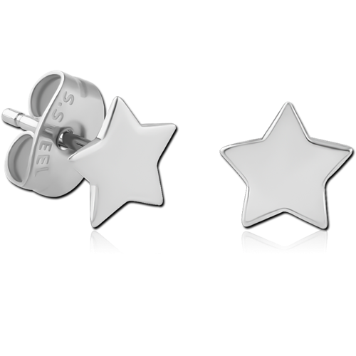 SURGICAL STEEL GRADE 316L EAR STUDS PAIR - STAR FLAT