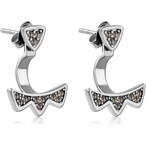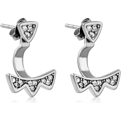 SURGICAL STEEL GRADE 316L JEWELED BACK EARRINGS WITH STUD PAIR - TRIANGLE