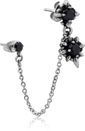 SURGICAL STEEL GRADE 316L JEWELED EAR STUDS WITH CONNECTING CHAIN