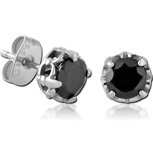 SURGICAL STEEL GRADE 316L JEWELED EAR STUDS PAIR - FLEUR DE LIS