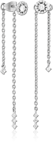 SURGICAL STEEL GRADE 316L JEWELED CHAIN EAR STUDS PAIR
