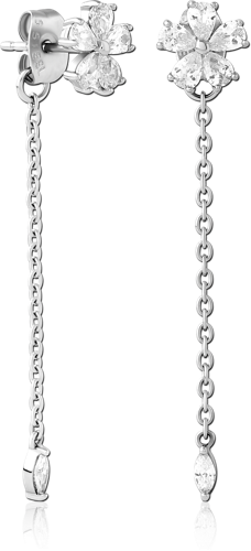 SURGICAL STEEL GRADE 316L JEWELED CHAIN EAR STUDS PAIR