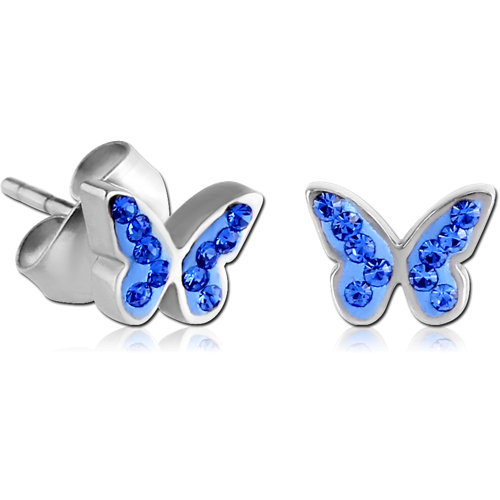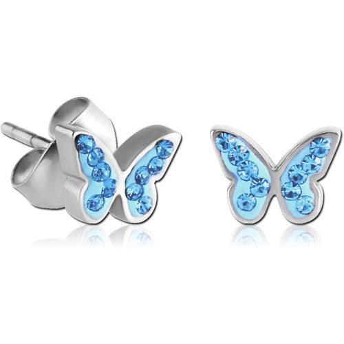 PAIR OF SURGICAL STEEL GRADE 316L CRYSTALINE JEWELED EAR STUDS-BUTTERFLY