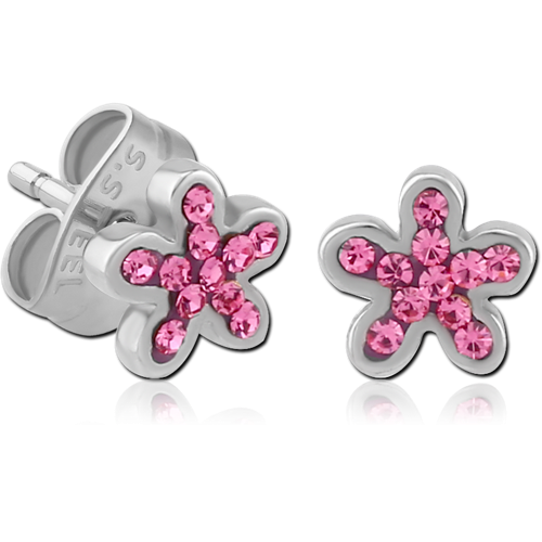 PAIR OF SURGICAL STEEL GRADE 316L CRYSTALINE JEWELED EAR STUDS-FLOWER
