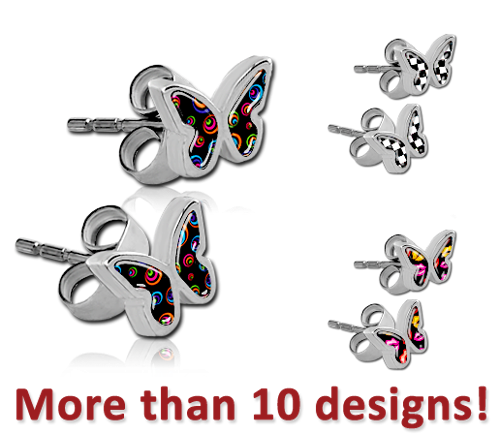 SURGICAL STEEL GRADE 316L PICTURE EAR STUDS-BUTTERFLY