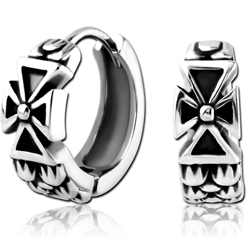 SURGICAL STEEL GRADE 316L HUGGIES PAIR - IRON CROSS