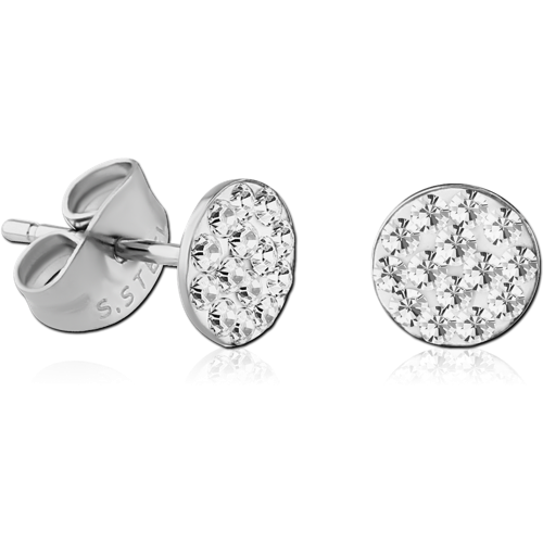 SURGICAL STEEL GRADE 316L VALUE JEWELED ROUND EAR STUDS PAIR