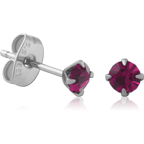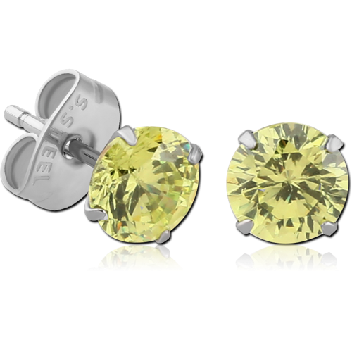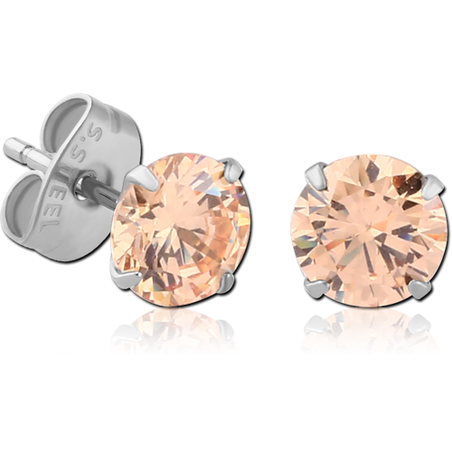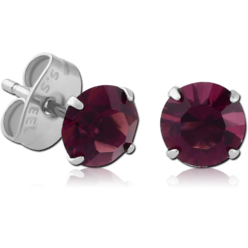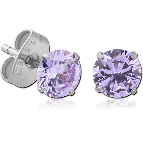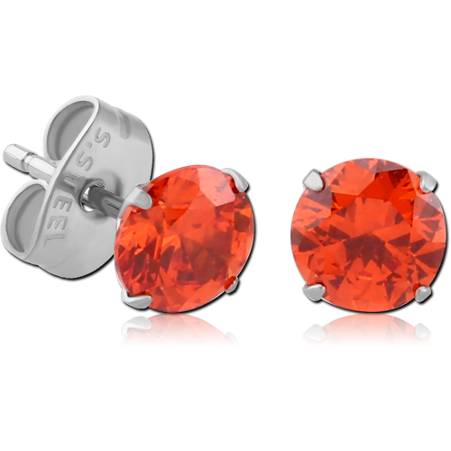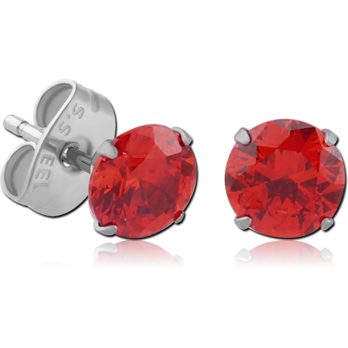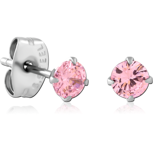 PAIR OF SURGICAL STEEL GRADE 316L ROUND PRONG SET JEWELED EAR STUDS