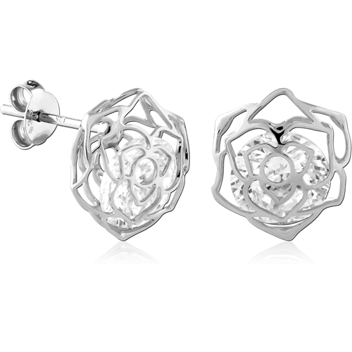 STERLING 925 SILVER PLATED JEWELED EAR STUDS PAIR