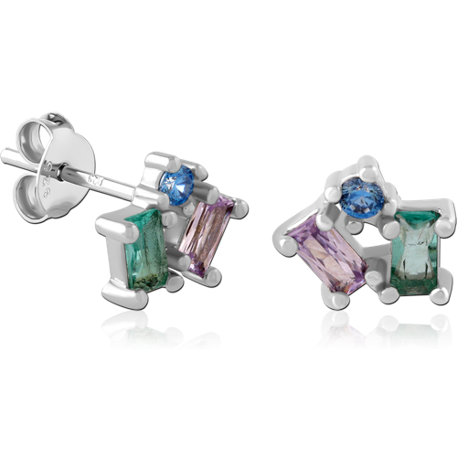 STERLING 925 SILVER PLATED JEWELED EAR STUDS PAIR