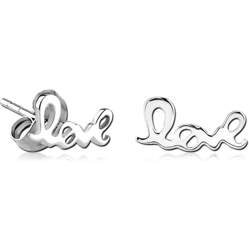 STERLING 925 SILVER EAR STUDS PAIR - LOVE