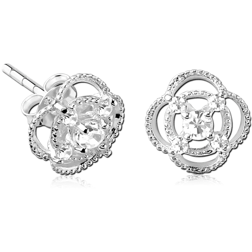 STERLING 925 SILVER JEWELED EAR STUDS PAIR