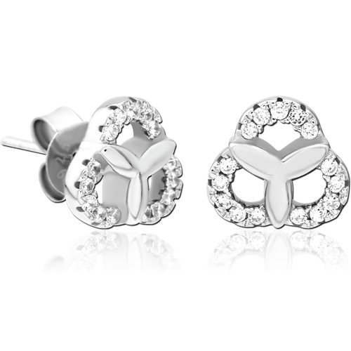 STERLING 925 SILVER JEWELED EAR STUDS PAIR