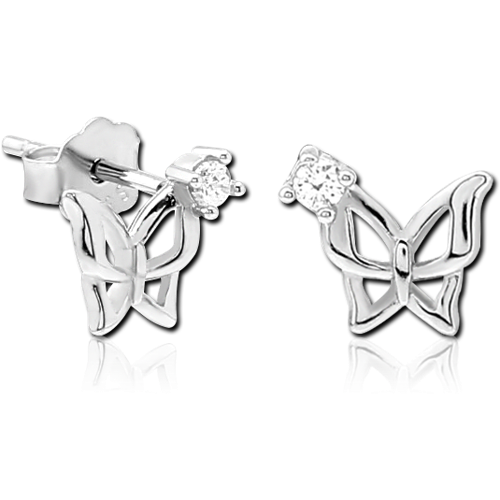 STERLING 925 SILVER JEWELED EAR STUDS PAIR - BUTTERFLY