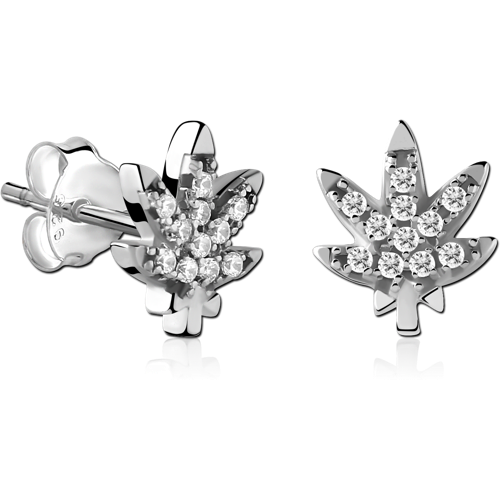 STERLING 925 SILVER JEWELED EAR STUDS PAIR - LEAF